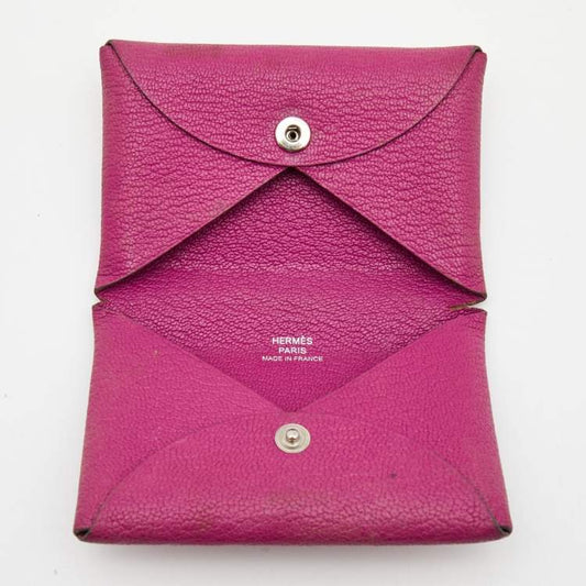 Hermès Cyclamen Chevre Mysore Leather Calvi Card Holder