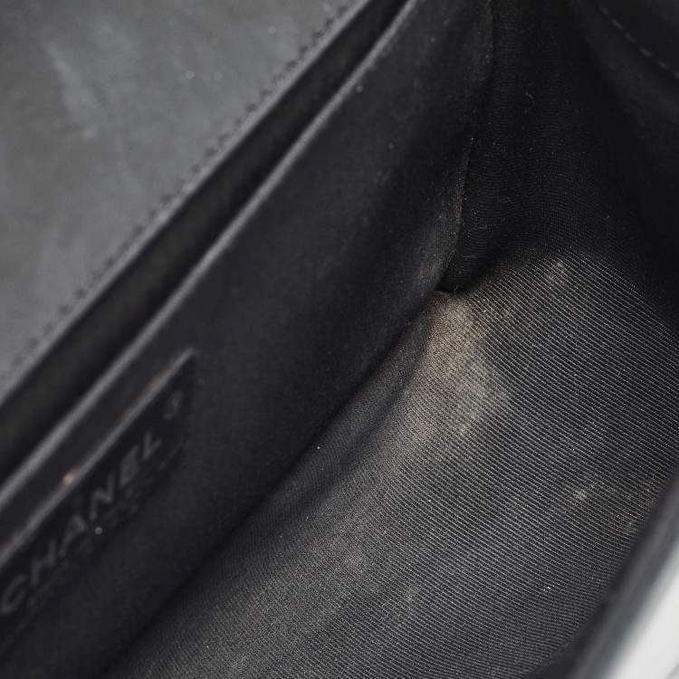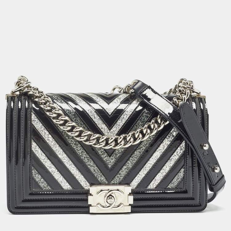 Chanel Black/Silver Chevron Patent Leather Medium Boy Flap Bag