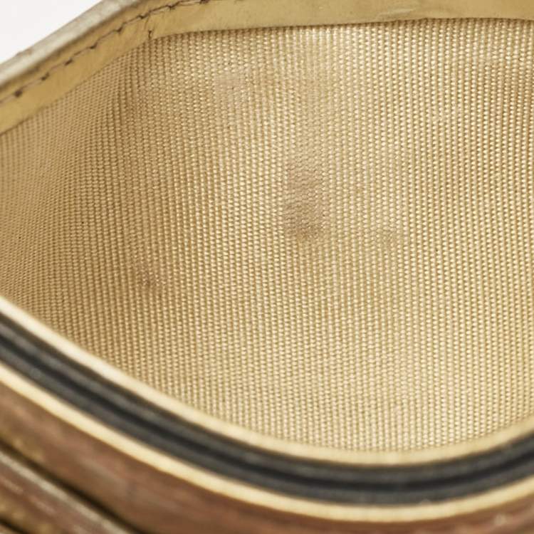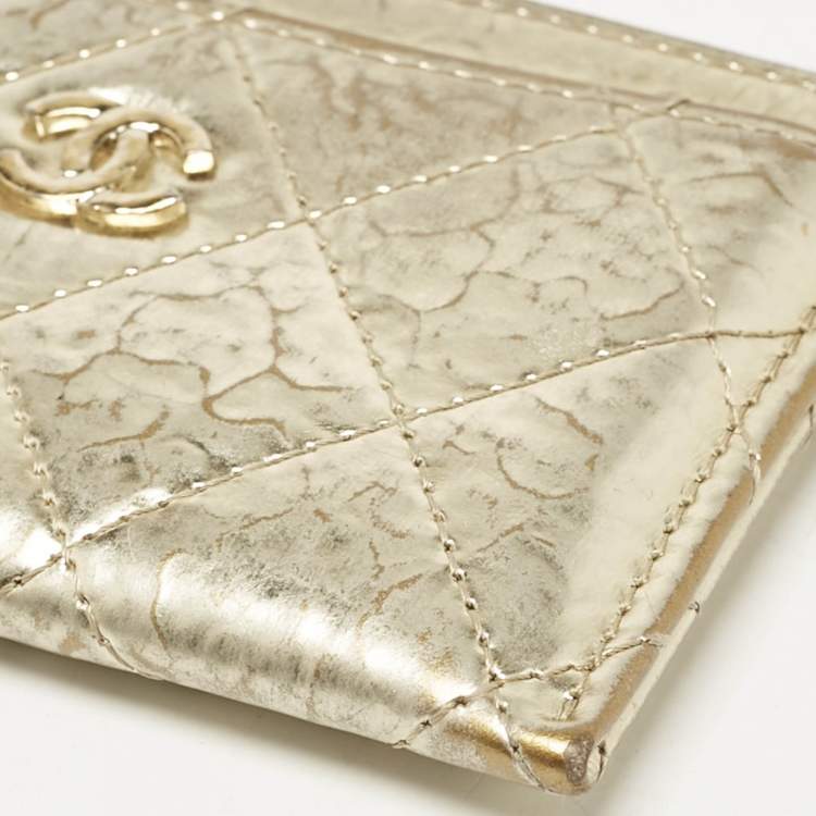 A stunning piece from Chanel, this gold quilted leather card holder features the iconic CC logo and a chic metallic finish.