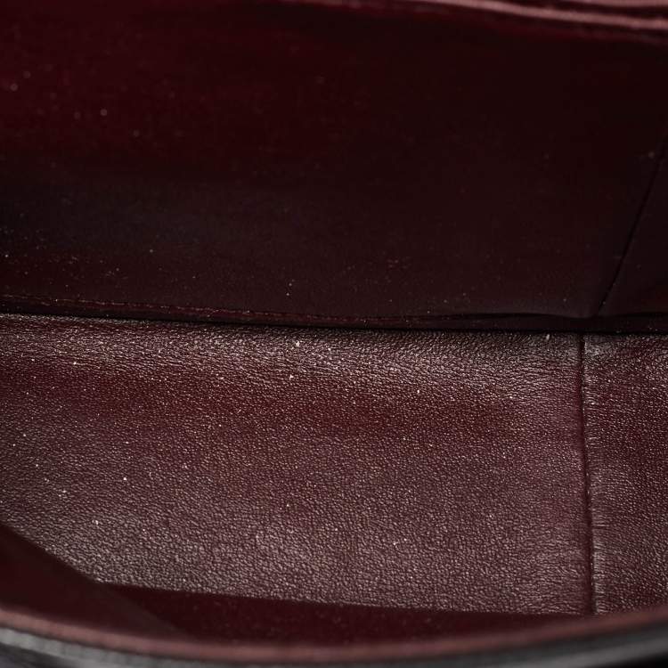 In good condition with scuffs/darkening in some areas, a minor crack on the exterior or strap, and scratches/discoloration on metal hardware.