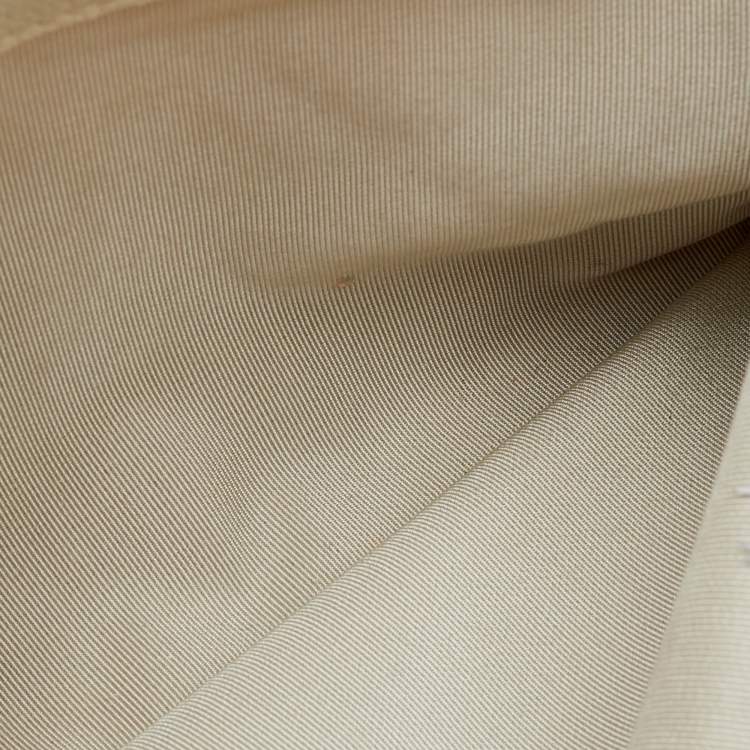 This item is in good condition with minor scuffs, darkening, and discoloration in a few areas, light creasing on the exterior, and normal wear on the hardware.