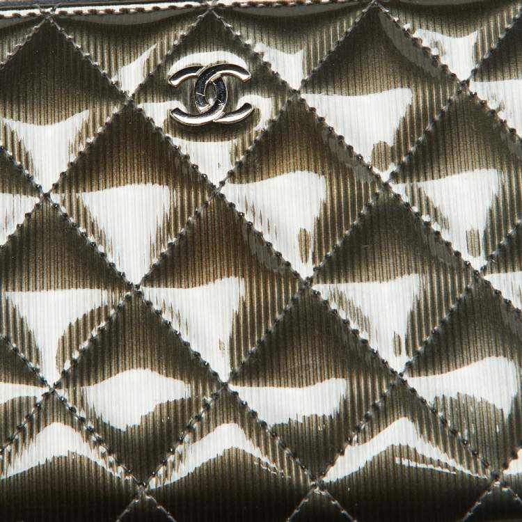 Chanel Olive Green Quilted Patent Leather Zip Wallet – Good Condition