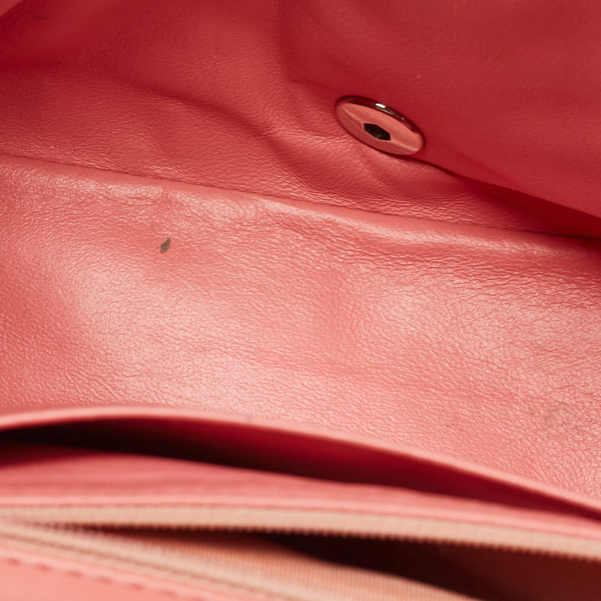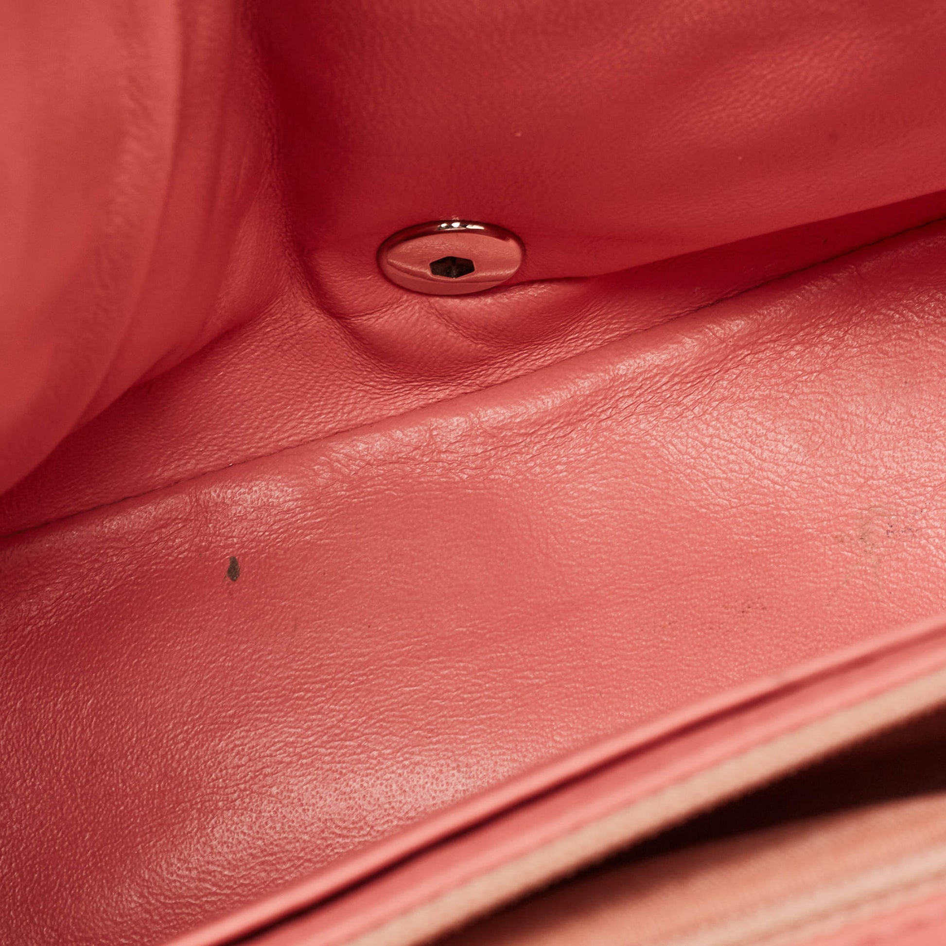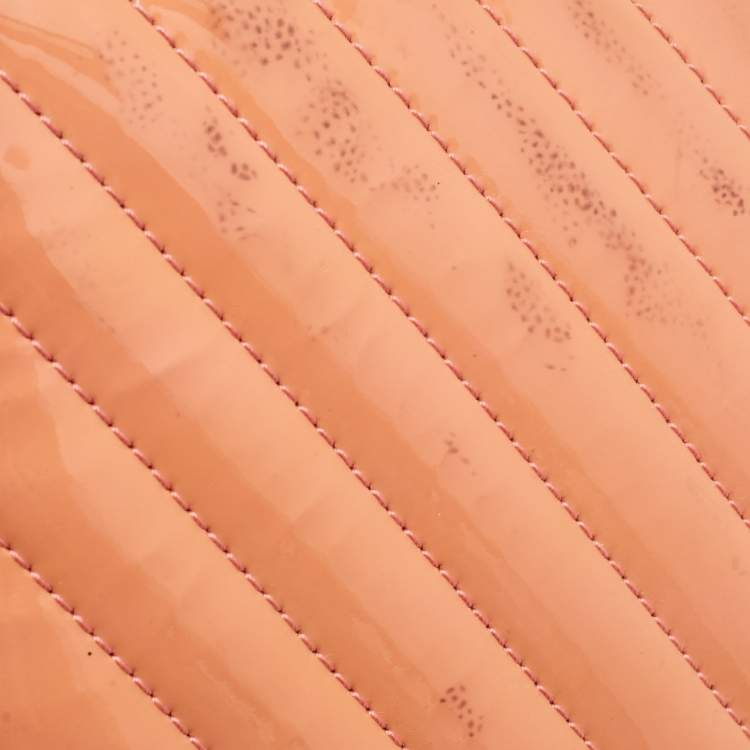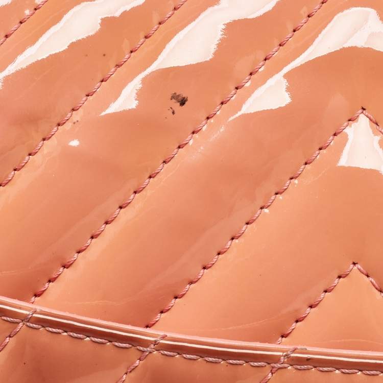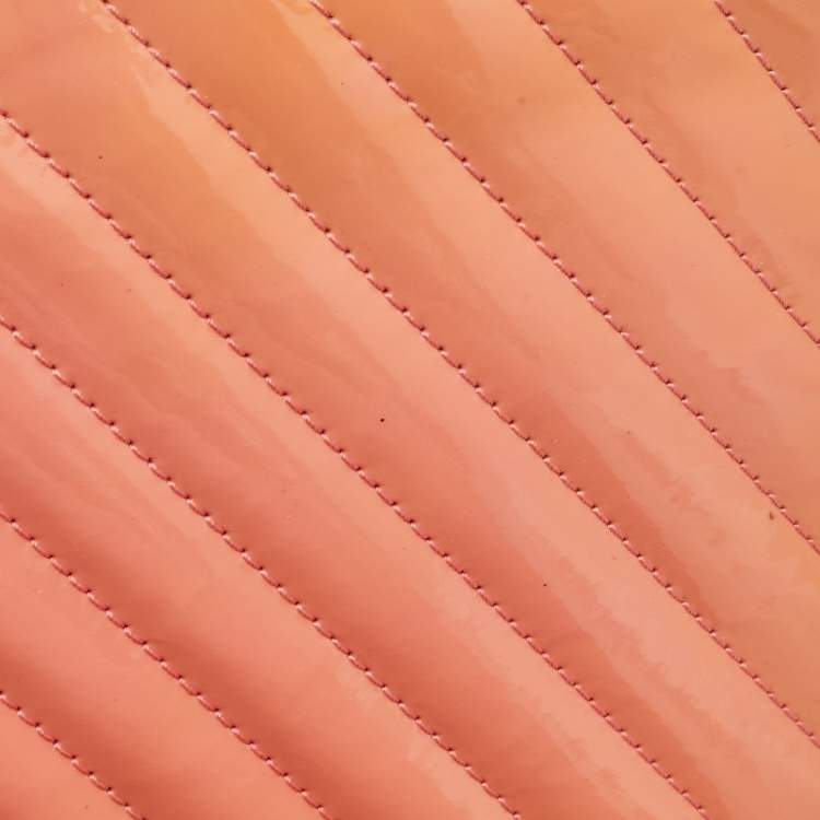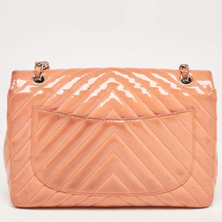 Elevate your collection with this Chanel Jumbo Flap Bag in pink chevron-quilted patent leather, detailed with silver-tone hardware and classic chain strap. A bold statement piece with timeless elegance.