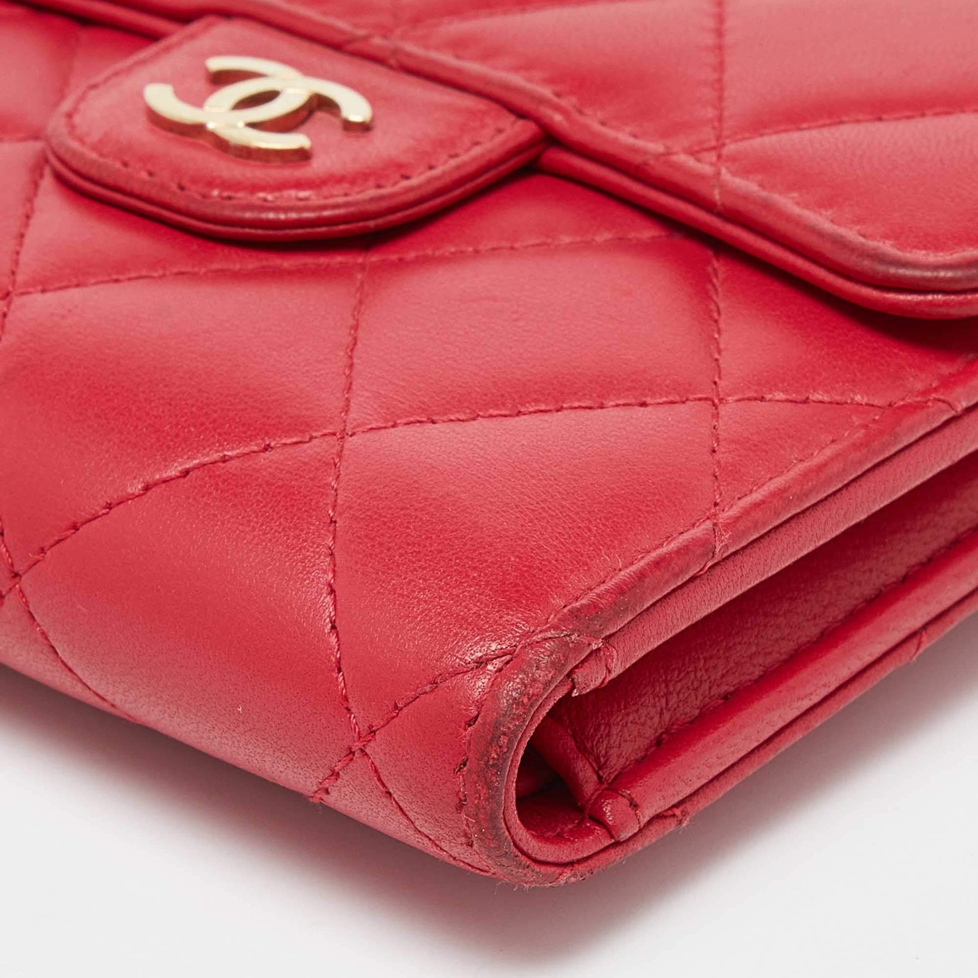 Chanel Red Quilted Leather Trifold CC Wallet – Good Condition