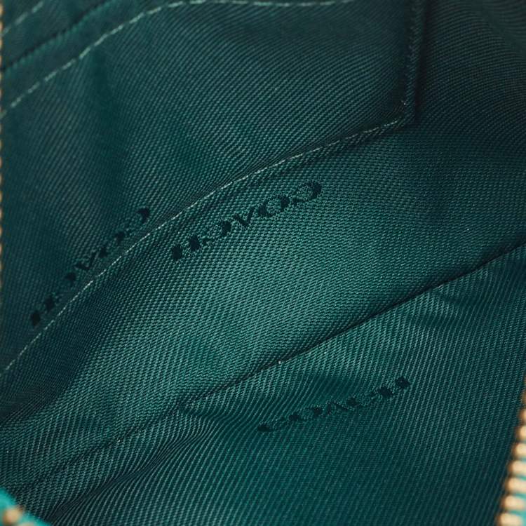 Add a pop of color and timeless elegance to your wardrobe with this authentic Coach green leather wristlet zip pouch. Crafted from premium pebbled leather and finished with sleek gold-tone hardware and Coach’s signature “C” emblem, this compact clutch is the perfect on-the-go accessory.