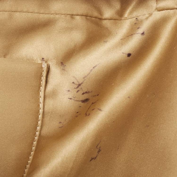 Minor darkening, dent marks, scuffs/scratches, some discoloration, stains, and pen marks on lining