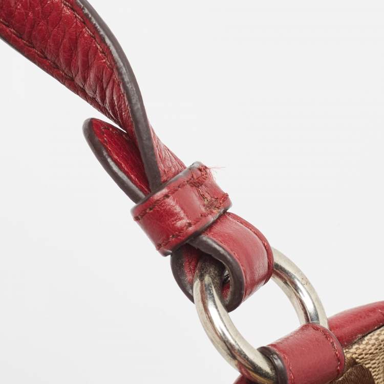 Elevate your everyday style with this spacious and functional Coach Carrie Tote, crafted in the brand’s iconic signature canvas with rich burgundy leather trim. The structured silhouette and wide shoulder straps make it perfect for work, shopping, or weekend errands.
