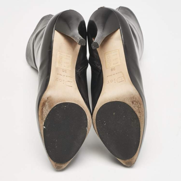 Dior Black Leather Zipped Ankle Length Boots Size 36
