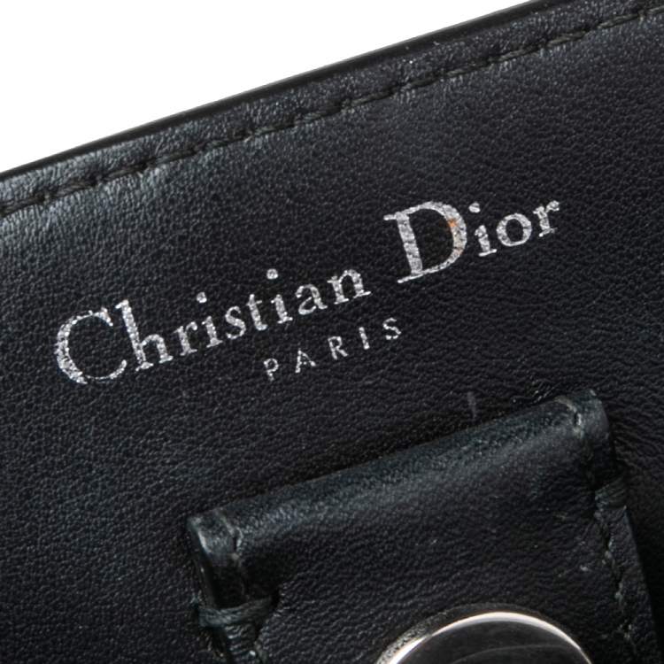 Authentic Dior Diorissimo Pocket Tote in elegant tri-color leather (black, blue, and light tones). A sophisticated and structured silhouette with dual top handles and front flap pocket, perfect for everyday luxury.