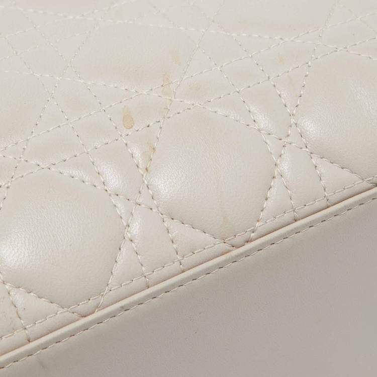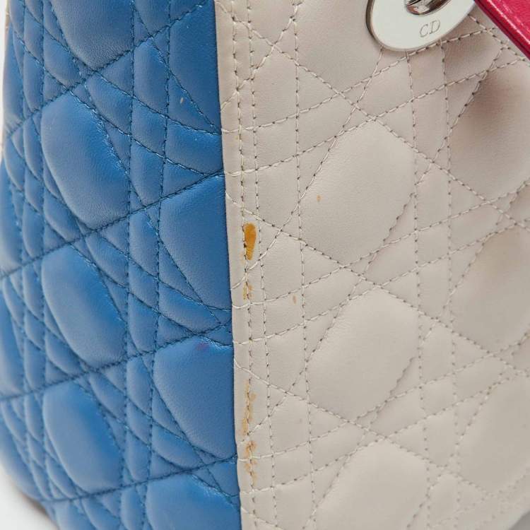 Authentic Dior Medium Lady Dior Tote in rare multicolor cannage lambskin leather, featuring cream, pink, and blue paneling. Comes with original dust bag and detachable leather strap.