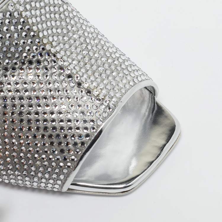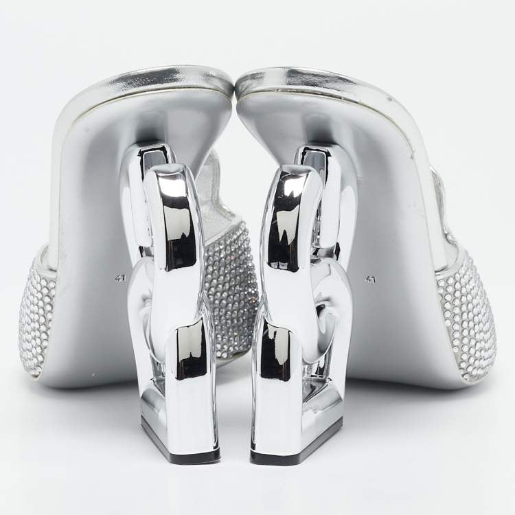 These gorgeous sandals from Dolce & Gabbana add instant glamour to any look. Crafted in Italy from silver satin, they feature a crystal-embellished front panel and signature DG-shaped heels that sparkle with every step.