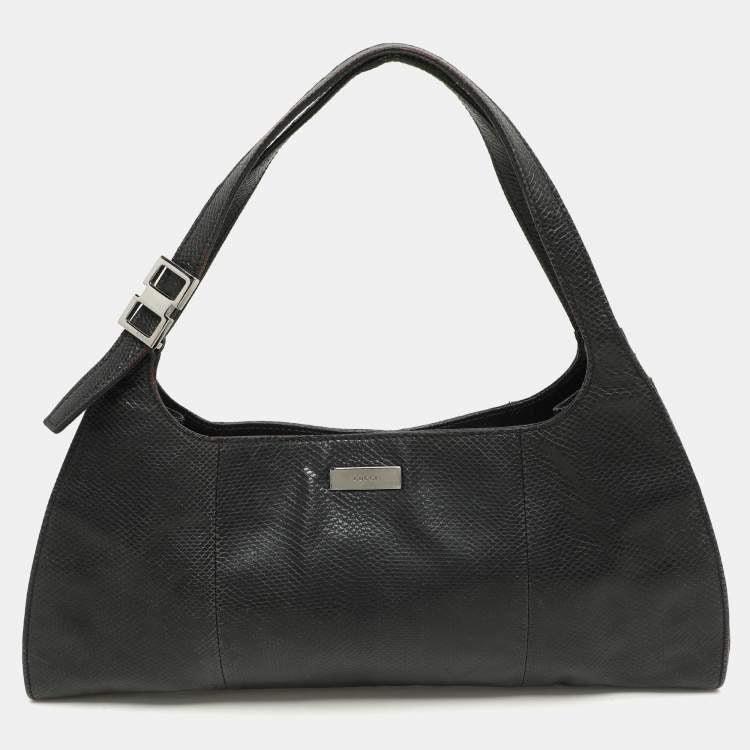 Sophisticated and sleek, this authentic Gucci Karung Leather Shoulder Bag adds a refined edge to any ensemble. Expertly crafted in Italy from supple black karung leather, its unique texture offers a luxurious finish that embodies timeless Gucci elegance.