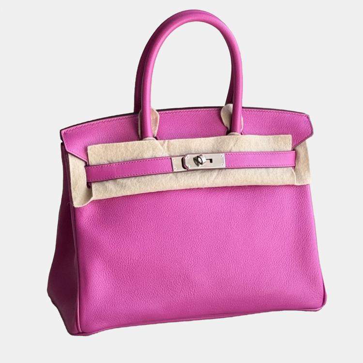 Turn heads with this stunning Hermès Birkin 30 in Magnolia Pink, crafted from luxurious Togo leather and paired with elegant gold-tone hardware. This vibrant yet sophisticated shade is a rare collector’s favorite, known for its ability to brighten any wardrobe while maintaining the timeless elegance of Hermès.