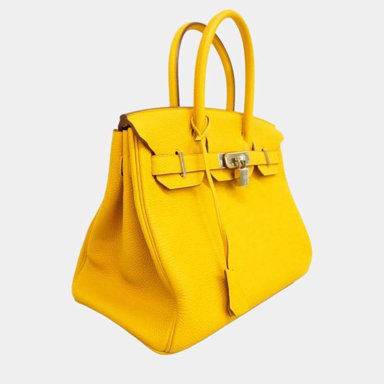 Authentic Hermès Birkin 30 in radiant Yellow Togo leather with Palladium hardware. A bold, standout piece that brings sunshine to any wardrobe — structured, luxurious, and guaranteed to turn heads.