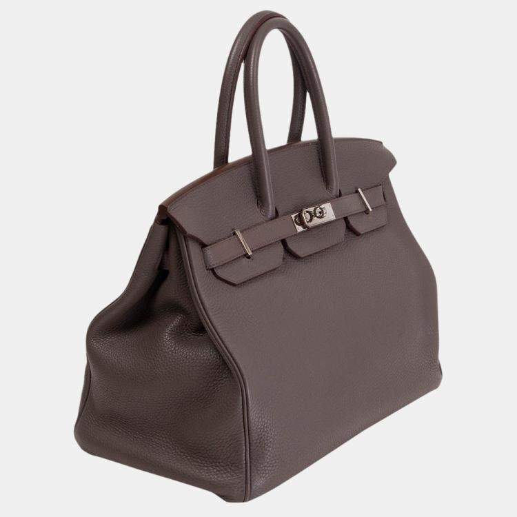 Authentic Hermès Birkin 35 in classic Grey Veau Togo leather with Palladium hardware. A timeless neutral and one of the most sought-after color and leather combinations in the Hermès universe — structured yet supple, ideal for everyday elegance or collector display.