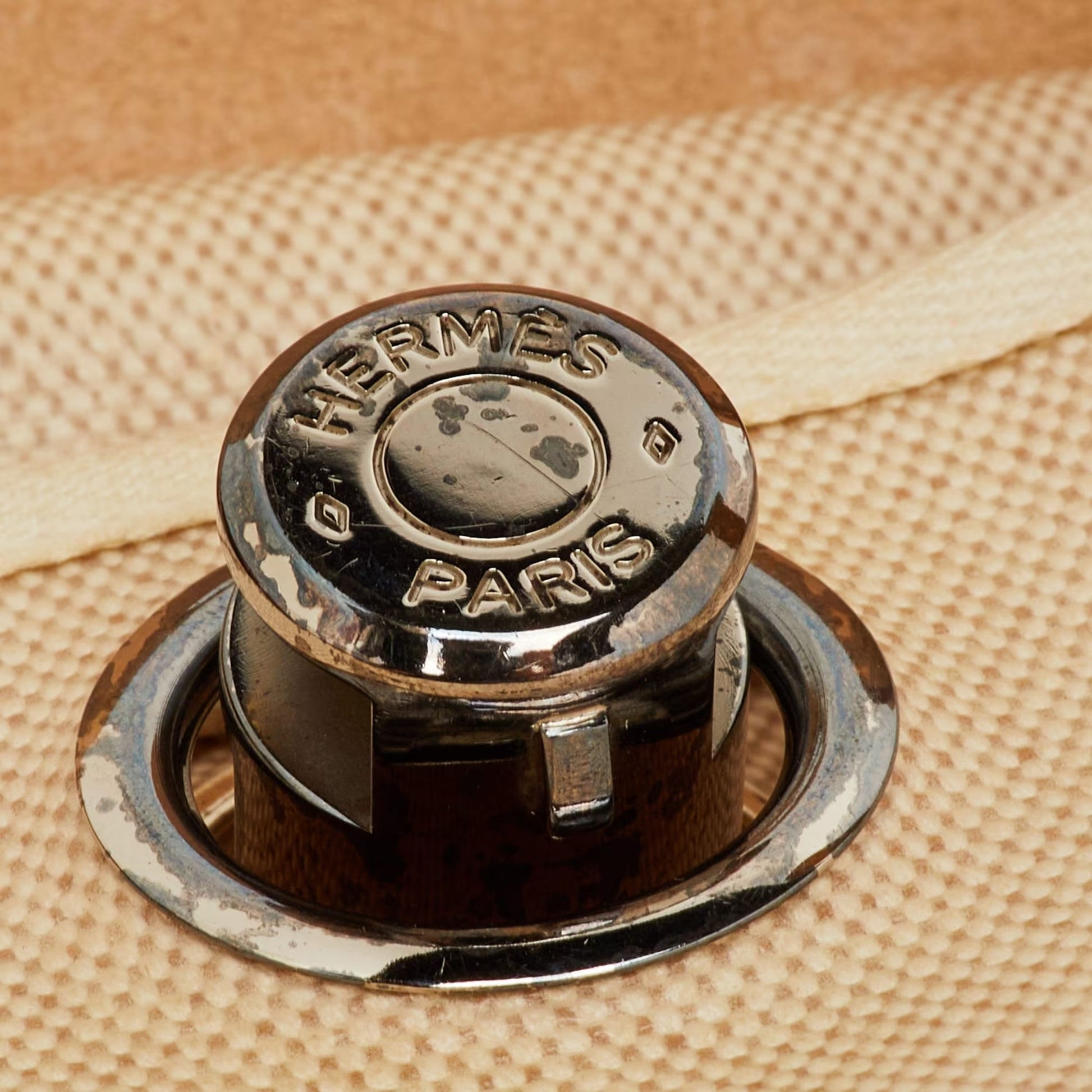 Gender Women Includes Original Dustbag, Padlock & Keys, Interchangeable Shell Length 29 cm Width 11 cm Height 30 cm Handle Drop 6 cm Shoulder Strap 35 cm Hardware Silver Tone Exterior Material Canvas, Leather Interior Material Canvas Origin France Production Year 2001 Color Beige
