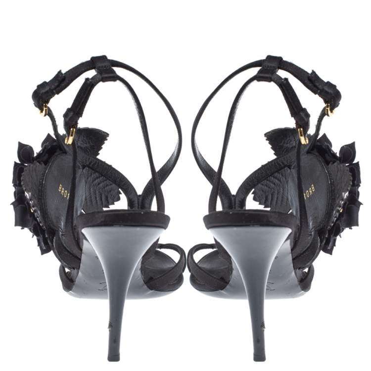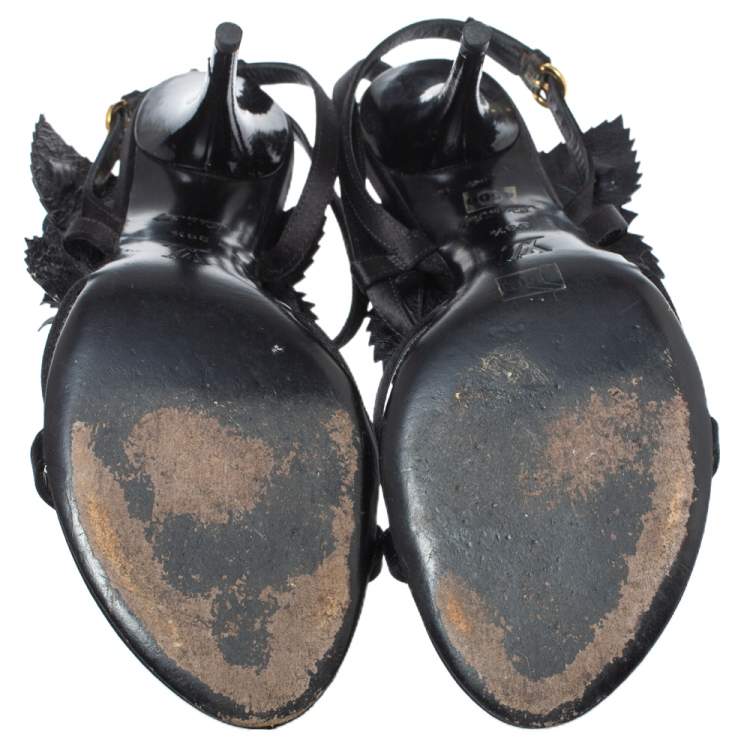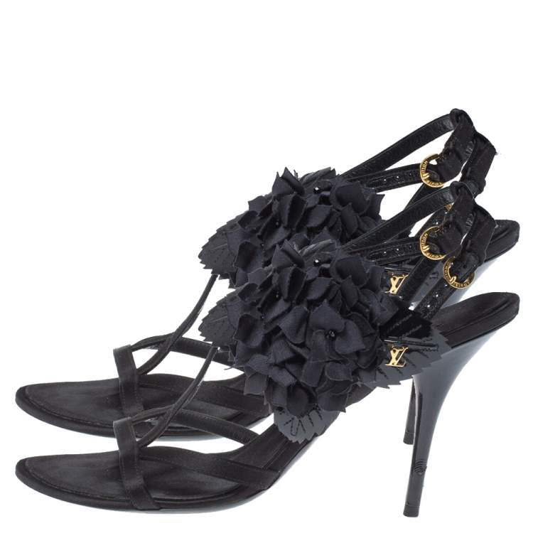 Louis Vuitton Satin Flower Ankle Strap Heels Size 39.5