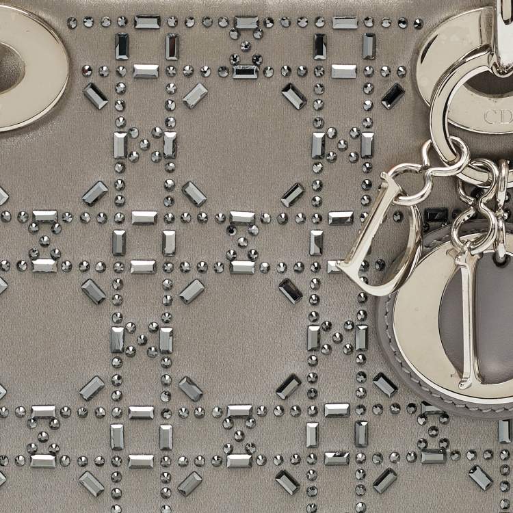 Mini Lady Dior – Grey Satin Beaded Cannage