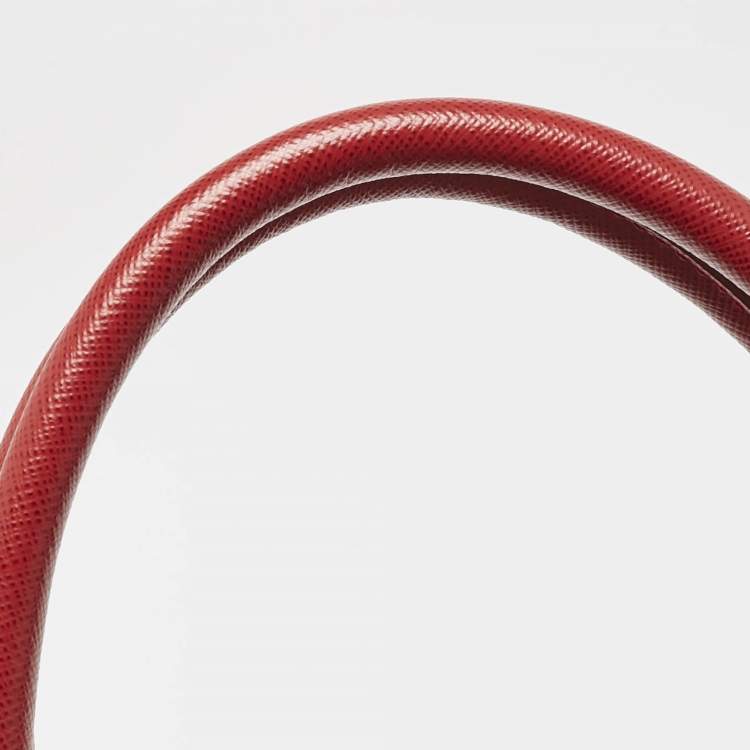 Turn heads with this statement-making Prada Red Saffiano Lux Leather Medium Tote – a bold blend of elegance and functionality. Crafted in Italy from Prada’s signature crosshatch-textured Saffiano leather, this piece features double zip compartments, gold-tone hardware, and a structured silhouette that’s perfect for daily wear or elevated evenings.